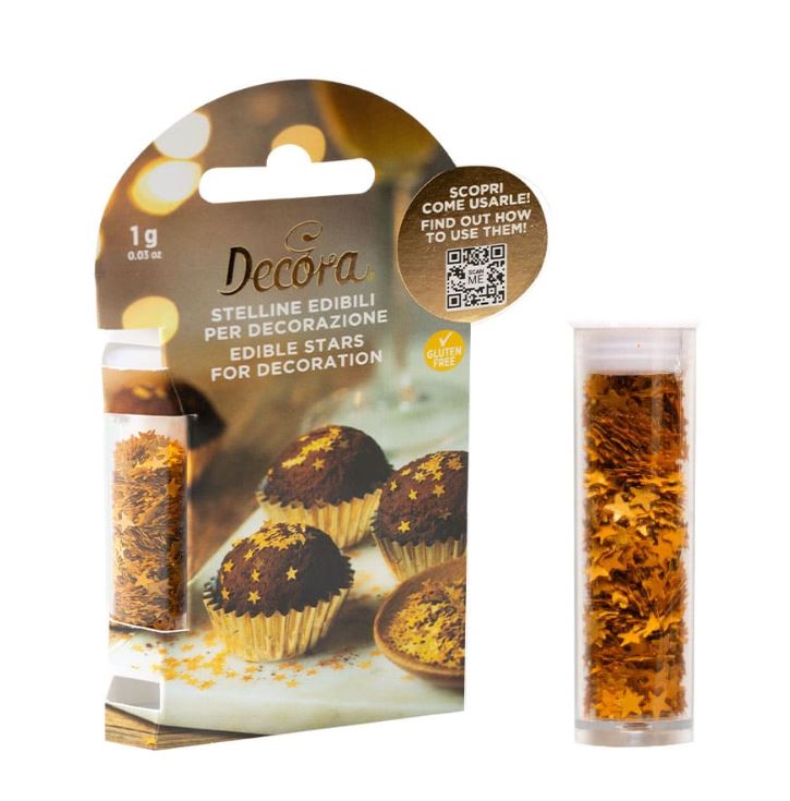 Kuldtähe kaunistused 1 g (SÖÖDAV) on söödavad dekoratsioonid, mis annavad kiirelt piduliku ja luksusliku viimistluse erinevatele maiustustele. Need sobivad ideaalselt koogikeste, küpsiste, tortide ja šokolaadide kaunistamiseks ning on suurepärane lisand ka jookidele ja kokteilidele, kui soovid silmapaistvat efekti vähese vaevaga.
